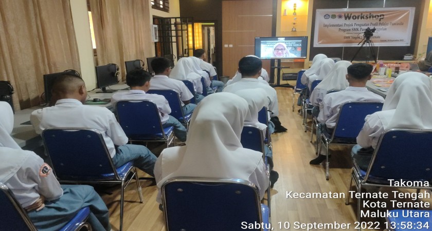 Ternate, 10 September 2022. P5 adalah projek yang akan menemukan jawaban atas pertanyaan mengenai peserta didik dengan kompetensi seperti apa yang ingin dihasilkan oleh sistem pendidikan Indonesia. Projek tersebut dilakukan dengan menanamkan karakter pada pribadi peserta didik berdasarkan nilai-nilai pancasila. Untuk lebih memahami tentang Implementasi P5 pada kurikulum merdeka, SMK Negeri 1 Kota Ternate melakukan Workshop Implementasi Penguatan Projek Profil Pelajar Pancasila, yang narasumber nya adalah Ibu Dr. Agung Suprihartin, S.Pd.,M.Si. Kegiatan ini dilakukan melalui Zoom Meeting yang berlokasi di Laboratorium Desain Komunikasi Visual SMK Negeri 1 Kota ternate. Pesertanya melibatkan para guru mata pelajaran yang terintegrasi dengan P5, serta para koordinator yang sudah di pilih oleh Kepala Sekolah. Selain itu, para peserta didik juga dilibatkan, agar mereka bisa memahami maksud dan tujuan dari P5 tersebut. Workshop ini dilaksanakan selama 1 hari, yaitu pada tanggal 10 September 2022.